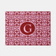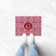 Moroccan inspired tile pattern, deep burgundy / wine with a light pink background, door mat with monogram