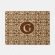 Moroccan inspired tile pattern, deep chocolate brown with a light beige background, door mat with monogram