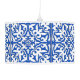 Moroccan inspired tile pattern pendant lamp with a polished, ceramic look - cobalt blue with a white background