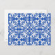 Moroccan inspired tile pattern postcard with a polished, ceramic look - cobalt blue with a white background