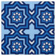 A traditional Moroccan tile pattern fabric, based on an Islamic ornamental design, in cobalt blue, dark navy / indigo, light sky blue, and white