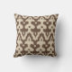 Moroccan tile inspired damask pattern of interlocking positive / negative fleur-de-lis shapes with a striated, Ikat woven texture - deep taupe tan and light beige throw pillow