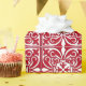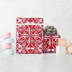 Moroccan inspired tile pattern with a polished, ceramic look - dark Chinese red with a white background