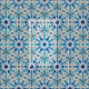 A symmetrical Moroccan pattern consisting of a mosaic of blue shades.