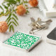Moroccan inspired tile pattern with a polished, ceramic look - jade green with a white background