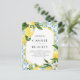 Make your wedding invitation modern and memorable with this customizable QR code wedding invitation postcard, featuring a vibrant watercolor design of yellow, blue, and white Moroccan tiles paired with fresh watercolor lemons. Perfect for a tropical, Mediterranean, boho, or destination wedding, this wedding invitation postcard combines elegant tile patterns with a pop of citrus for a playful yet sophisticated feel. The included QR code allows guests to easily RSVP or access wedding details online with just a scan, making it both convenient and stylish. Personalize this botanical wedding invitation postcard with your names, wedding date, venue, and any other important info.