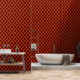 This wallpaper design features an intricate and elegant Moroccan trellis pattern. The design showcases a rich maroon background with golden yellow interlocking shapes, creating a striking contrast that exudes luxury and sophistication. The repeating geometric pattern brings a sense of harmony and order to the space, making it an excellent choice for adding depth and interest to any room. This wallpaper is perfect for creating a feature wall in living rooms, bedrooms, or dining areas, adding a touch of exotic flair and timeless elegance.