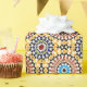 A design inspired by authentic Moroccan zellige art, combining precise geometric symmetry with a harmonious balance of warm and cool colors in a vibrant composition.