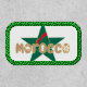 This design captures a contemporary celebration of Moroccan identity: a flat, modern five‑point star abstracted from zellige geometry with deliberate gaps that suggest tile joints and handcrafted rhythm; a clean, display wordmark integrated across the star where each 'o' subtly references camel, old keyhole‑shaped negative space, and palm in simplified form; At the upper part of the star is a map of the Kingdom of Morocco. Together they convey heritage, place, and modern pride in a bold symbol.