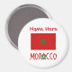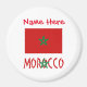 Personalized round magnet with a fun design showing a Moroccan Flag with the word MOROCCO, below, in the colors of the flag. Above is space for your name, in red letters, for a personalized effect or a wonderful customized gift. Wonderful for mementoes or party favors for family reunions, travel groups, or clubs. Cool stocking stuffer or Hanukkah gift.