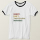 The product was as advertised. The message is succinct and is an eye-catcher. This shirt gets a heap of feedback from onlookers. Most ask you to stand still while they finish reading the definition. They then either give you the thumbs-up or nod any walk away. Either way, its a real conversation starter and so far, no one has disagreed enough with the print to verbalize. The material is fairly light, but the print is stable enough to withstand washes and some activity. A fair deal. Readable and durable.