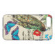 Beautiful collage of vintage botanical fine art of a Peacock Bird, blue Morpho Butterflies, red Peony Flower with Ferns, plus French Ads for Cacao and Rose de Provence, is on this iPhone 7 Device Case. Images are public domain due to expired copyright. Collage is by me.