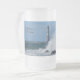 Frosted mug souvenir - A wave crashes over a rock jettie on Folly Beach. Morris Island Lighthouse was constructed in 1876 and is on the National Register of Historic Places in 1982. Looking for more prints or products? Feel free to visit my store: http://www.zazzle.com/timelessmomentsphtgy This photo was taken by Jennifer White with Timeless Moments Photography. All images are copyrighted © Timeless Moments Photography/Jennifer White. All rights reserved.