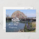 This pretty California travel postcard features a dock with fishing boats and Morro Rock in the background