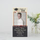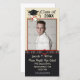 Graduation design for him or her features a black Mortar cap, ribbon tied Diploma, gold stars and streamers with the date 2018. Text areas and photo all ready for you to customize.