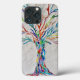 This unique phone case features a mosaic tree in rainbow colors on a pale gray background.