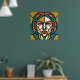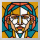Mosaic Geometric Portrait in Amber and Teal Poster