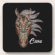Stylish coasters for horse lovers has an intricate glass & mosaic patterned horse face with customizable text