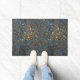 Mosaic - image of stones and glass arranged in a random pattern in shades of blue ranging from cobalt to turquoise and gold tiles