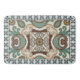 A mosaic tile pattern style design bathroom bath mat for your bath decor, with your family name. Hues of green, brown and blue.