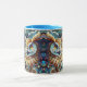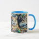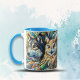 Ai art depicted a wolf and owl in a tile mosaic style. Blue eyes wolf and serious owl coffee mug. Great for anyone who loves wildlife.