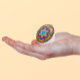 Small mosaic tiles in the prettiest colors of sapphire, amethyst, amber and emerald combine to make a kaleidoscopic design with all the hues of a flower garden. A wonderfully eclectic addition to your boho chic decor.