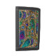 Durable, pocket for license, cash, and pockets for cards. Beautiful photograph quality, durable, hand washes well