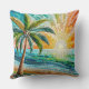 Mosaic Tropical Beach Sunset Palm Throw Pillow