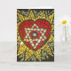 Photo of a Baruch Ha Ashem Mosaic with a Glowing heart with a Star of David in the center on a green background.