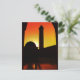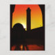 Postcard: Mosque in sunset artwork with typical islamic architecture with round copula roof, tall minaret and view from under arches of the inner courtyard. Flock of birds passing minaret tower in beautifully colored sunset. Photo from Syria, Damascus mosque, that have been destroyed in the 2014 during the conflict. Architecture/Travel series - Syria. Original Photography/Art/Design by work4dream.