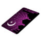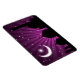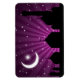 Islamic illustration with silhouettes of the moon, stars and a mosque on a purple night sky.