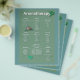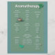 A simple yet lovely moss green chart with all kinds of aromatherapy hints listed. It tells you what aromas and essential oils to use for insomnia, insects stings and bites, depression, and six others. Includes basil, lemon, bergamot, tea tree, cinnamon, and many more. We offer this as a flyer, postcard and greeting card, so you can send it to your clients, and as a full sized poster.
