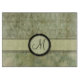 A sophisticated seafoam and sage green diamond feather pattern in an aged parchment grunge style decorates the top half of this design, a rich spring moss green marble pattern on the bottom, all overlaid by a mint green silk ribbon and a customizable monogram seal.