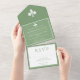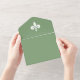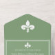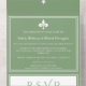 Elegant and simple Wedding all in one invitations featuring a fleur de lis against a moss green background. This design is a unique choice for a modern wedding. Easy to customize with your wedding details. Click "Customize It" to find more personalization options.