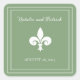 Elegant and simple Wedding sticker featuring a fleur de lis against a moss green background. This design is a unique choice for a modern wedding. Easy to customize with your wedding details. Click "Customize It" to find more personalization options.