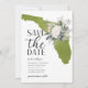 Moss green Florida destination wedding save the date with a floral US state illustration.