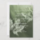 This fall family reunion invitation card has a dark moss green color theme featuring subtle monochromatic maple leaves accenting a flowing light to dark earthy green gradient - by katz_d_zynes