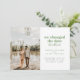 If you had changed your wedding date, but decided you couldn't wait to get married and eloped instead, share your big news with loved ones with this elopement announcement. It features moss green and dark grey text with space for a single photo as well as the details about your elopement. The back of the card has space for a personal message.