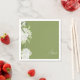 Moss Green White floral script name bridal shower napkins.