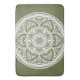 This white mandala sits on a dark moss or olive green background. The colors are harmonious and balanced. Part of the Bardh Mandala Collection.