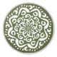 This white mandala sits on a dark moss or olive green background. The colors are harmonious and balanced. Part of the Kylgh Mandala Collection.