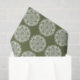This white mandala sits on a dark moss or olive green background. The colors are harmonious and balanced. Part of the Kylgh Mandala Collection.