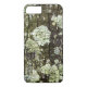 Moss covered oak tree trunk. The iPhone is new, but you can make it look like its 100 years old with this phone case picturing an old oak with at least three different kinds of moss growing. The brown gray bark of the tree contrasts and blends with the sage green, yellow green, and silvery green of the moss.
