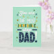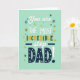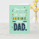 This card shows a mint-green background with the message stacked from top to bottom in different letter styles. Near the top, it says “You are” and “step” in soft white, flowing letters, with two small navy banners made of tiny dots on either side of “step.” Just below, “THE MOST” appears in simple white capital letters, and “INCREDIBLE” stands out with letters that switch between deep green and golden yellow. The bottom third is taken up by a big “DAD!” in dark navy, and each letter has neat white polka dots that make it feel extra friendly. A tall white exclamation mark with a navy dot at the bottom finishes the message, and small star shapes in gold, green, and blue are scattered around like confetti. It feels meaningful because the layout builds up to “DAD!” in a way that makes your appreciation clear and hard to miss ❤️.