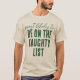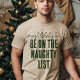 Get into the holiday spirit with this fun, spirited Christmas t-shirt design that features a playful quote "Most likely to be on the naughty list" in a casual, two-part font style. The distressed green lettering pops against the light background, creating a festive, vintage look that's perfect for family photos. The focus is on the bold statement, making it an instantly recognizable and witty addition to your matching holiday outfits!
