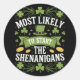 Most Likely To Start The Shenanigan St Patricks Classic Round Sticker