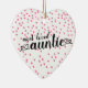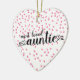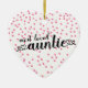 Most loved Auntie heart shaped christmas ornament with a field of tine pink hearts background. Visit our shop to view this ornament in a large assortment of grandmother names.
