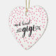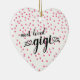 Most loved Gigi heart shaped christmas ornament with a field of tine pink hearts background. Visit our shop to view this ornament in a large assortment of grandmother names.