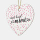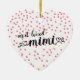 Most loved Mimi heart shaped christmas ornament with a field of tine pink hearts background. Visit our shop to view this ornament in a large assortment of grandmother names.