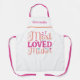 Enjoy home cooking, barbeque, and baking with this charming and practical kitchen apron, designed to bring a smile to Mom's face. Featuring a "Most Loved Mother" celebration wish. Personalize her name to make it truly customized. This apron is perfect for moms who love to cook, bake, or create. It's both modern and stylish. Show her how much she's loved and make this Mother's Day or any day truly special!